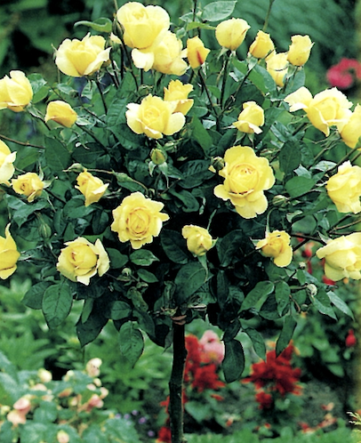 U kan de keuze maken tussen de stamrozen zoals hier naast op de foto, vers ingepot of met blote wortel vers van het land.